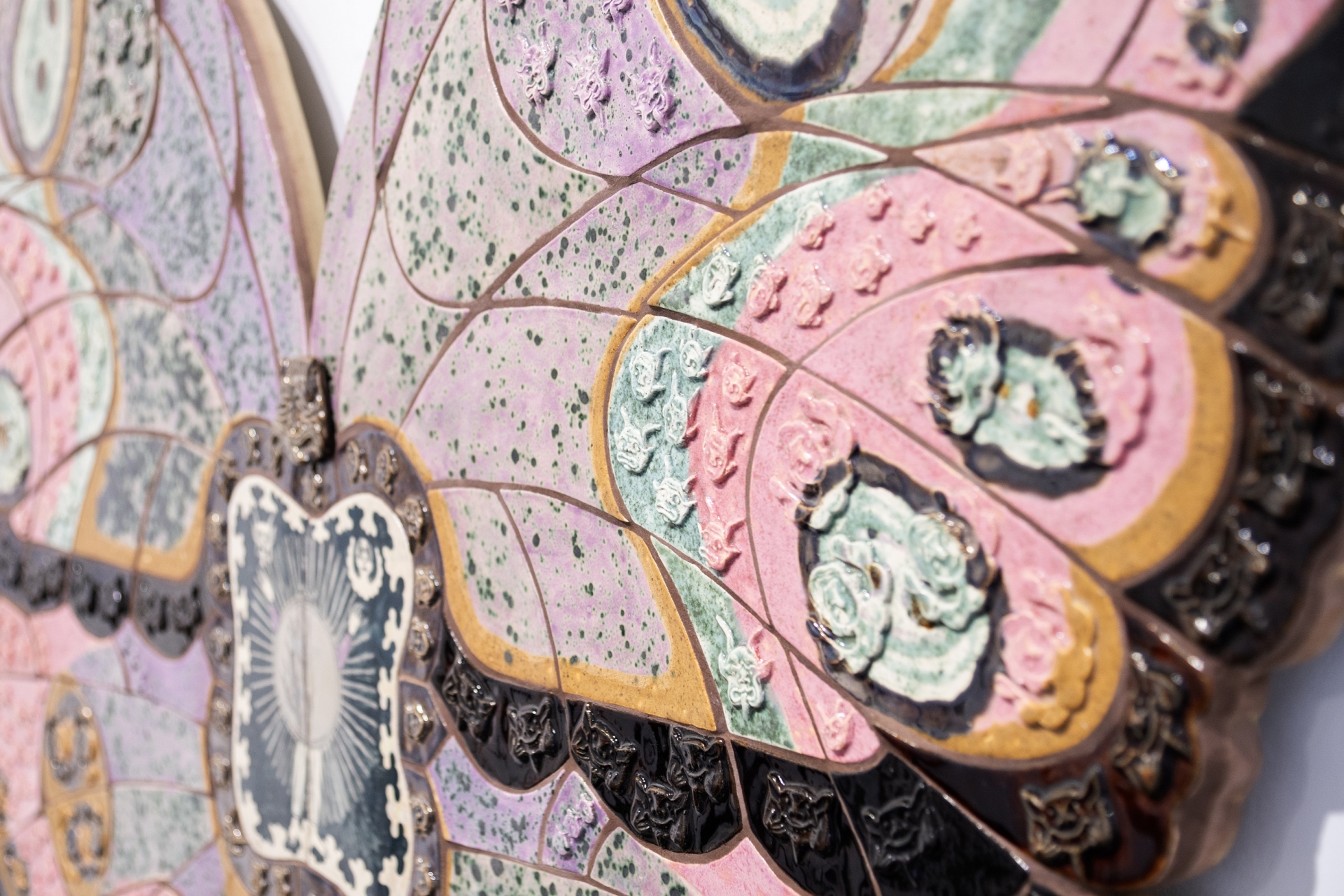 © a művészek és a Hegyvidék Galéria jóvoltából. Fotó: Egressy Orsolya © MOM Kulturális Központ – Hegyvidék GalériaNemcsak az emberi tevékenység környezetre gyakorolt hatása számít rendkívül időszerű témának manapság, hanem az öröklődő családi minták, transzgenerációs traumák feldolgozása is. A romániai székhelyű Fazekas Ildikó két kiállított munkája (Sorminta, Minden meg volt írva) érzékeny lenyomata annak a meghatározó kapocsnak, ami ott tart bennünket a családi hagyomány nagy mozaikjában. Kifejezetten interaktív képek ezek, hiszen a rizspapír fátyolként takarja őket, így rajtunk múlik, mennyit tudunk vagy akarunk belőlük megismerni. Mi döntjük el, hogy a fátyol által homályosan látott kép alá merülünk -e, vagy megelégszünk a külső burok szemlélésével.