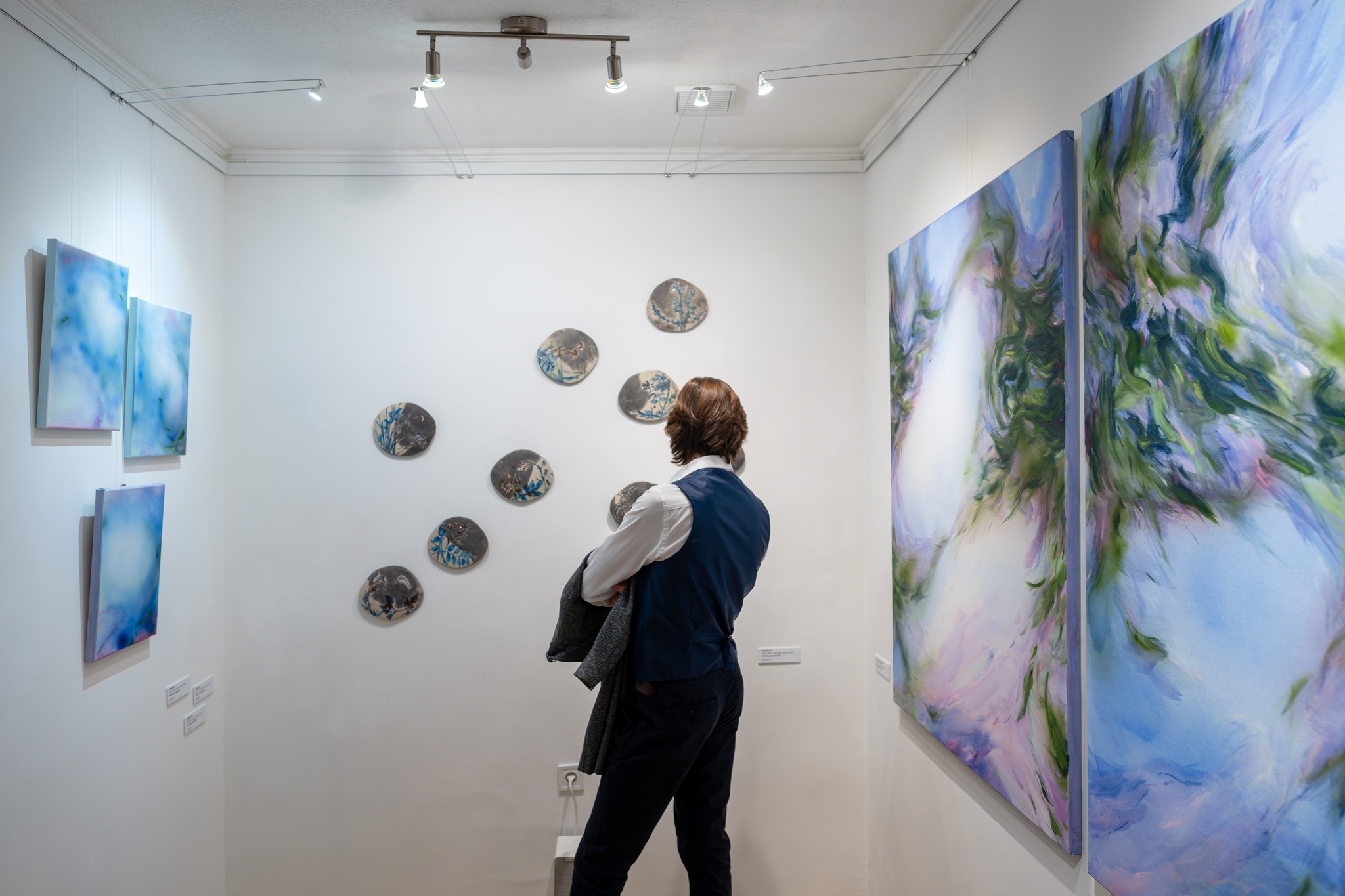 AZ ÖSSZES KÉP: Részletek a kiállításból. K Galéria Hármas hatás – SZINtézis, Budapest, 2025.