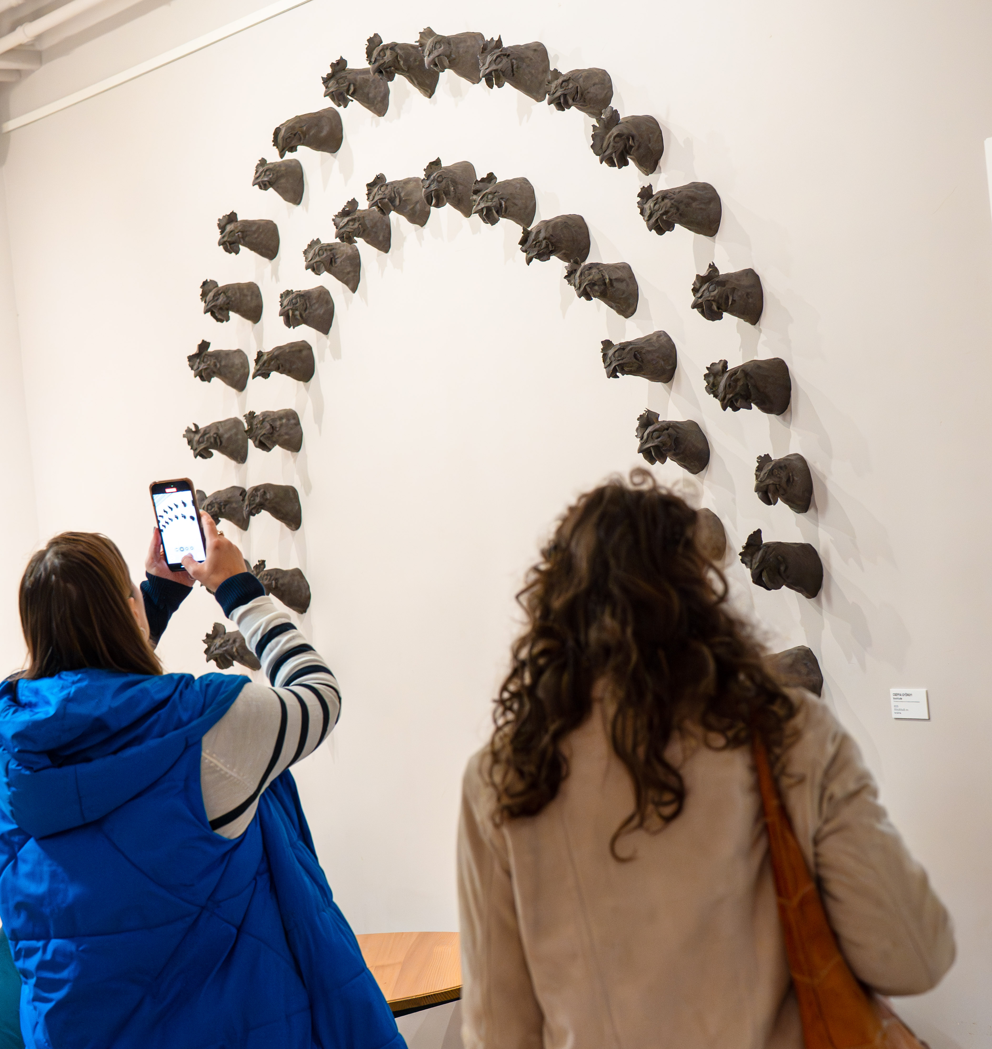 Sűrű ritmusban ismétlődve sorakoznak a falon fekete kerámia csirkefejek. Az alkotás 52 portréból áll össze, így minden hétre jut egy. Ezzel a nagyszülők tanyáján töltött vasárnaponkénti ebédeket idézi fel Cséffai Györgyi. Ugyanekkor emléket állít annak, hogy megtörte a levesbe való csirkék nyakelvágásának hetente ismétlődő hagyományát. Mintha minden egyes fej egy emlék lenne, amely már nem különíthető el a többitől: egyetlen kollektív test részei a hála és a felejtés között lavírozva. A hála ebben a kontextusban megőrzést jelképez az anyagban, a formában, az ismétlésben.