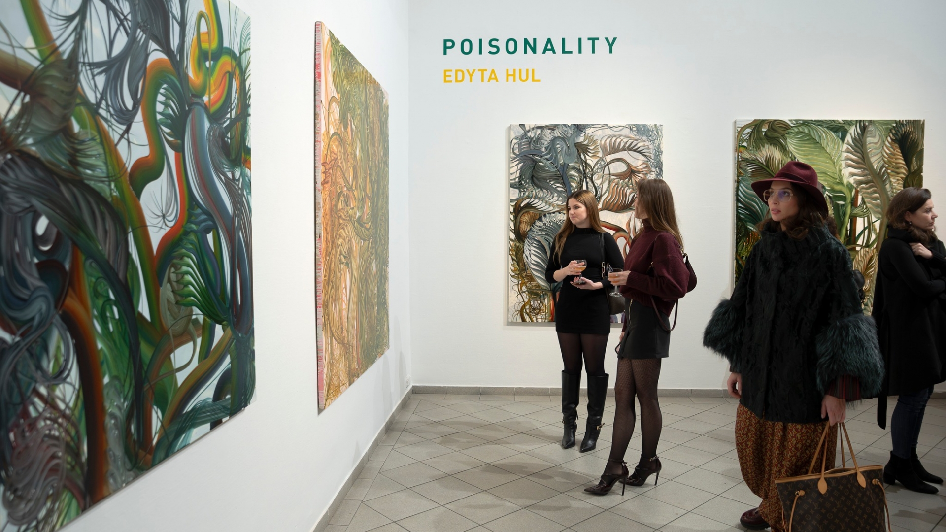 Edyta Hul varsói festőművész képei első pillantásra egy érzéki, szenzuális, túláradó világba vezetnek, ahol organikus motívumok és növényi formák kerülnek előtérbe.