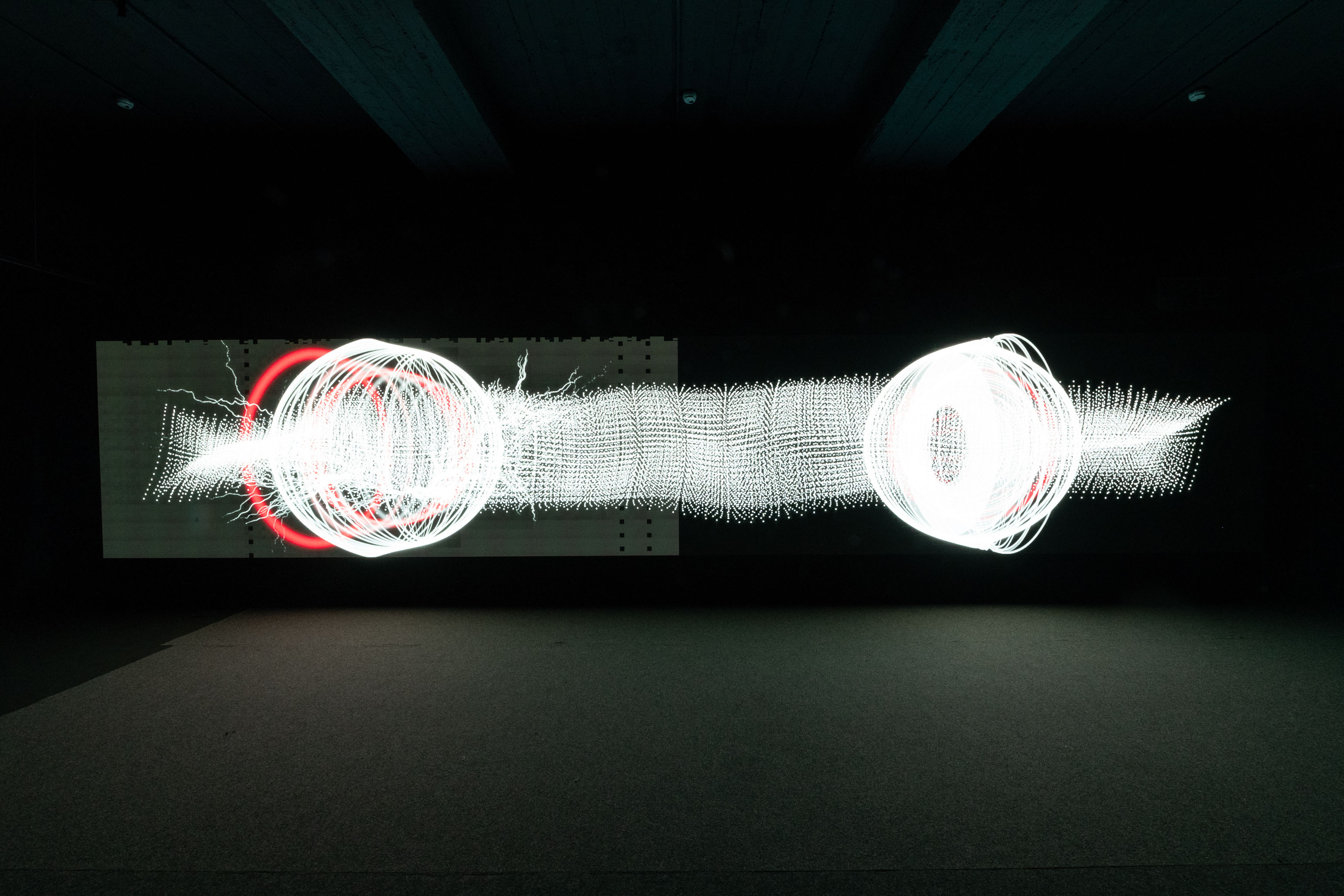 Ez a Binálé. A villogó fényben többedjére is biennálénak olvasom, ami nem áll távol a valóságtól, hiszen ez a digitális egyesekből és nullákból szőtt bináris kódok biennáléja – úgyis mint nagy, nemzetközi kortárs seregszemléje. Minden kicsit más, mint egy szokásos kiállításon. A helyszín nagy csarnokok és kis irodák labirintusa (mondjuk ismerős; az OFF Biennálé már alaposan belakta), a feliratok világító paneleken olvashatók, a jegyeket online platformon lehet csak megvásárolni, viszont este tízig látogatható.