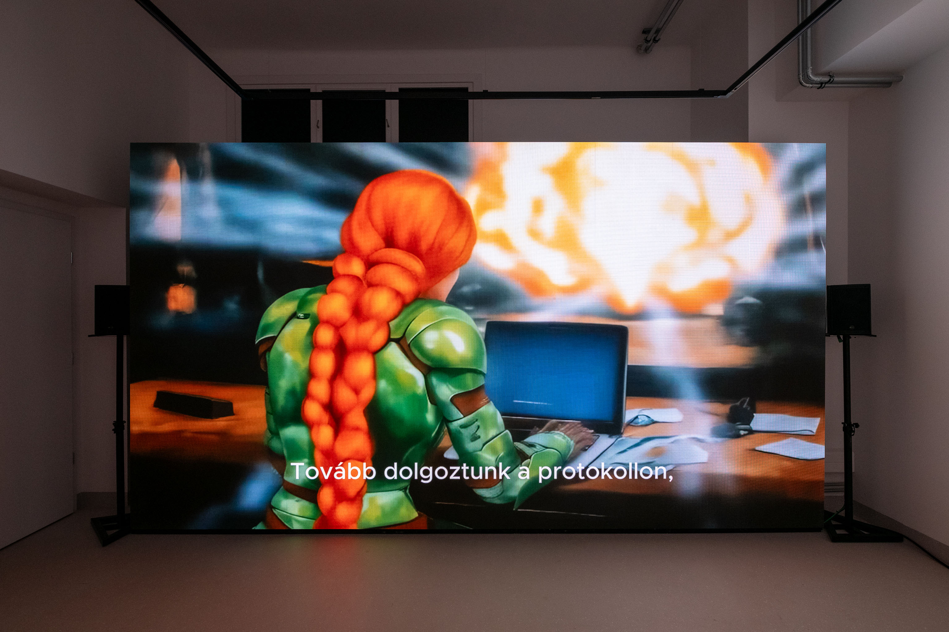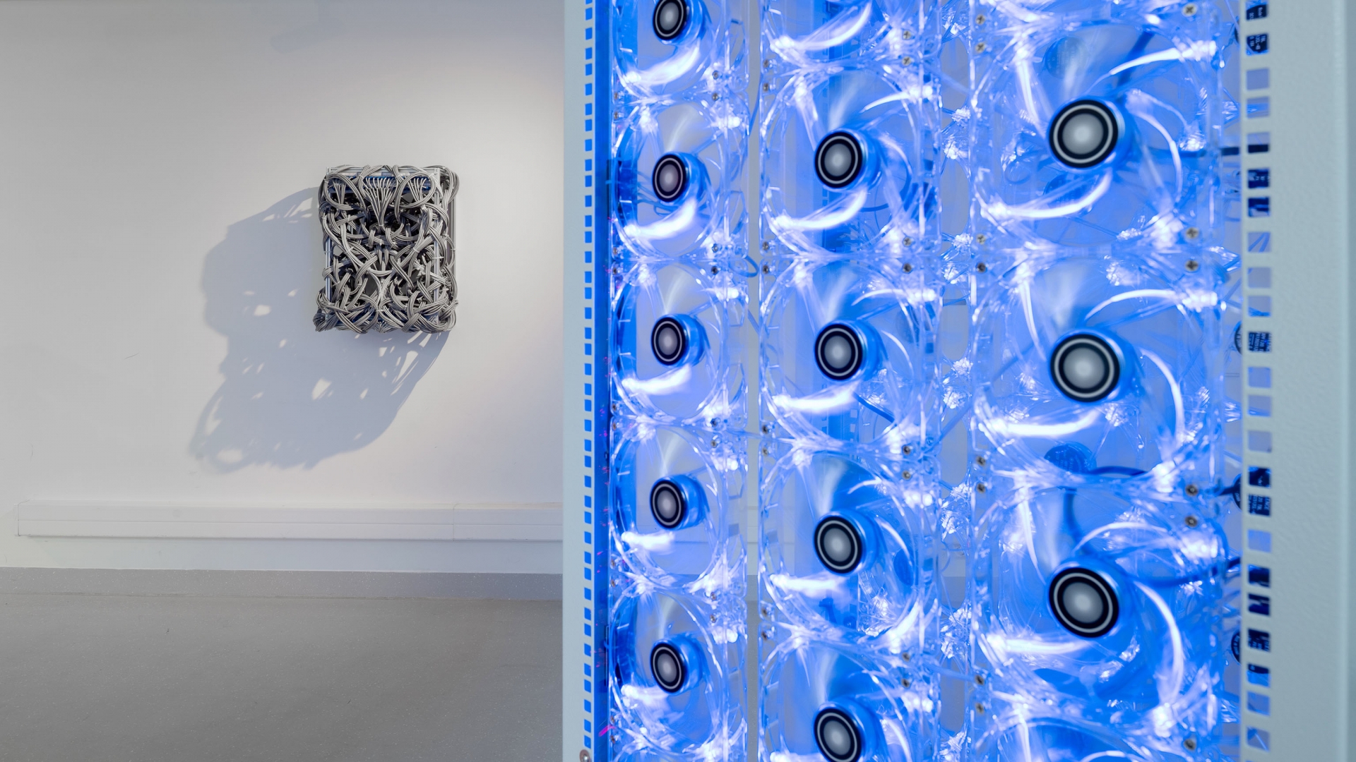 Diszkréten zümmögnek a ventilátorok, világítanak a ledcsíkok, négynegyed morajlik a távolból. Az AI-rettenet utópikus hírvivői töltötték meg a Merlin kulturális befogadóintézményként újjászületett tereit. Egykori VJ-k tértek vissza a régi partik színhelyére, az extravagáns kurátorpáros hívására. A hangulatról a svájci 0xCollection nevű kísérleti művészeti gyűjtemény és a házat fenntartó Örkény István Színház gondoskodik. Itt mindenki, az utolsó nulla-egyes szívdobbanásig, a technóban él, és megpróbálja elképzelni, milyen lesz egy kortárs kiállítás abban a szép új világban, ahol a mesterséges intelligencia átveszi a hatalmat az emberiség felett.