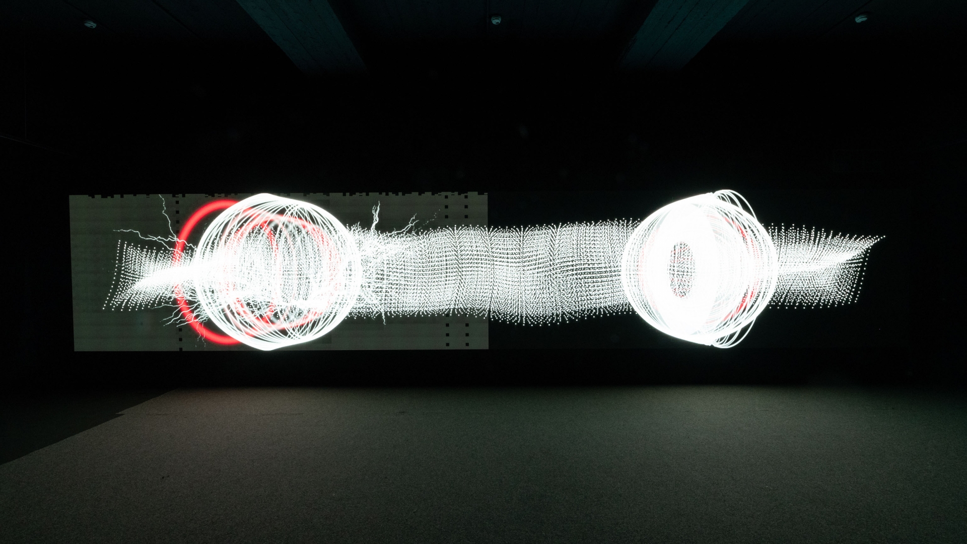 Az első nagy gyomorrugás egy tökéletesen elsötétített teremben ér. Már az előkészületek is baljósak: le kell adni a bejáratnál minden világító eszközt, praktikusan a telefonokat. Diszkonnektált meztelenségben lépünk be a teljes feketeségbe. Nincs tér, nincs érzékelés, csak a fenyegető, mindent elnyelő sötét. (A címfelirat alatt sokat sejtető az előre megjelölt időparaméter: „végtelen időtartam”. Wow.) Ez itt a nagy multimédia-úttörő, Kurt Hentschläger birodalma. Leírása szerint „immerzív installáció” – de bármire is gondolnánk az immerzív szó hallatán, itt meg kell szorozni ezerrel. Hosszú eseménytelenség után, az óceánmélyi sötétben villámcsapásként villannak fel a fényrajzolatok, a cikázó hullámok, a körök és csíkok, a másodperc töredékrésze alatt égetve ki a retinát. Utána feketeség megint. Morajlik a basszus. (Nem tudom pontosan, mi az a „kvadrafonikus” hang, de ellenállhatatlan.) A szemgödörbe égve lassan halványul el a felvillantott stroboszkópfény vándorló szellemképe, pszeudó-látvánnyal töltve ki a végtelen sötét űrt. Addiktív, metafizikus élmény – a kódok metafizikátlanul steril szférájában.