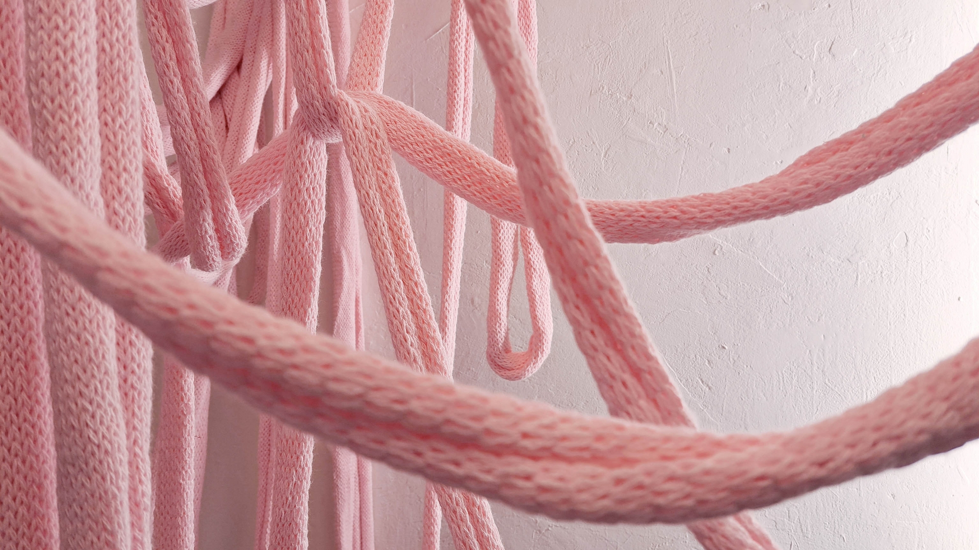 Sok kötéshez sok idő kell. A kiállított kelmék mind kézi vezérlésű síkkötőgépen készültek, magukon őrizve a készítésükkel eltöltött hosszas, meditatív, kézműves munka nyomát, mely többletjelentéssel ruházza fel őket.