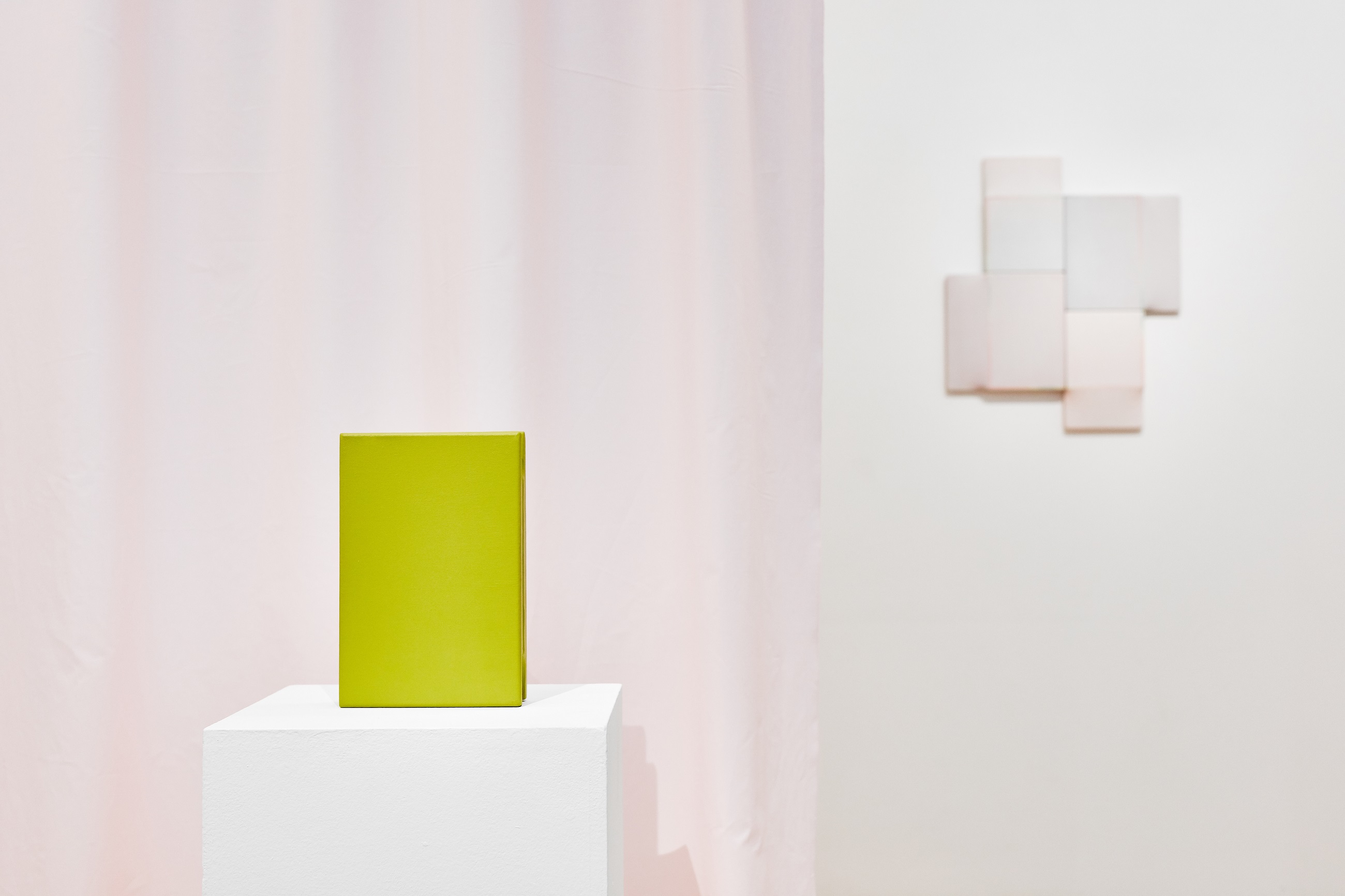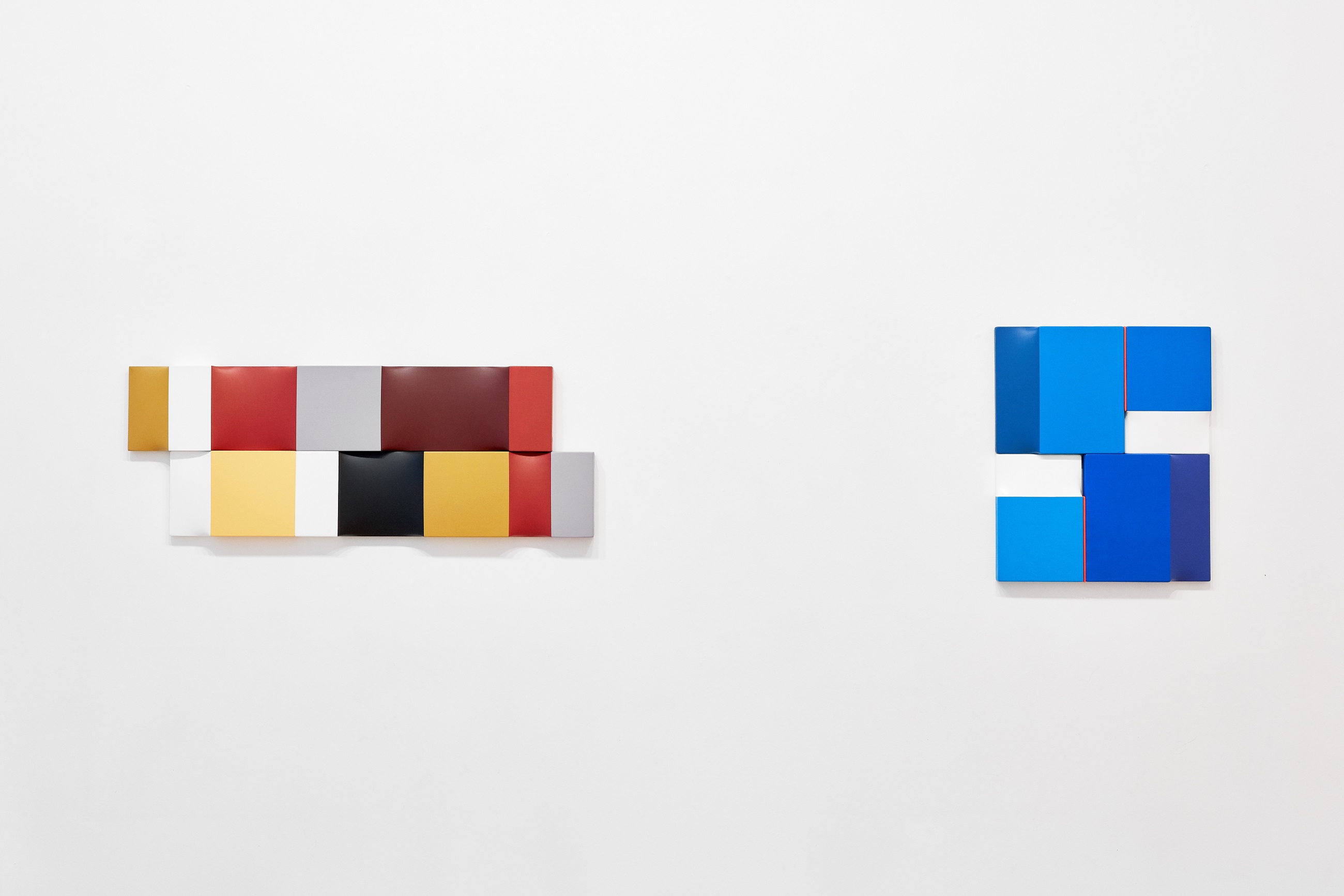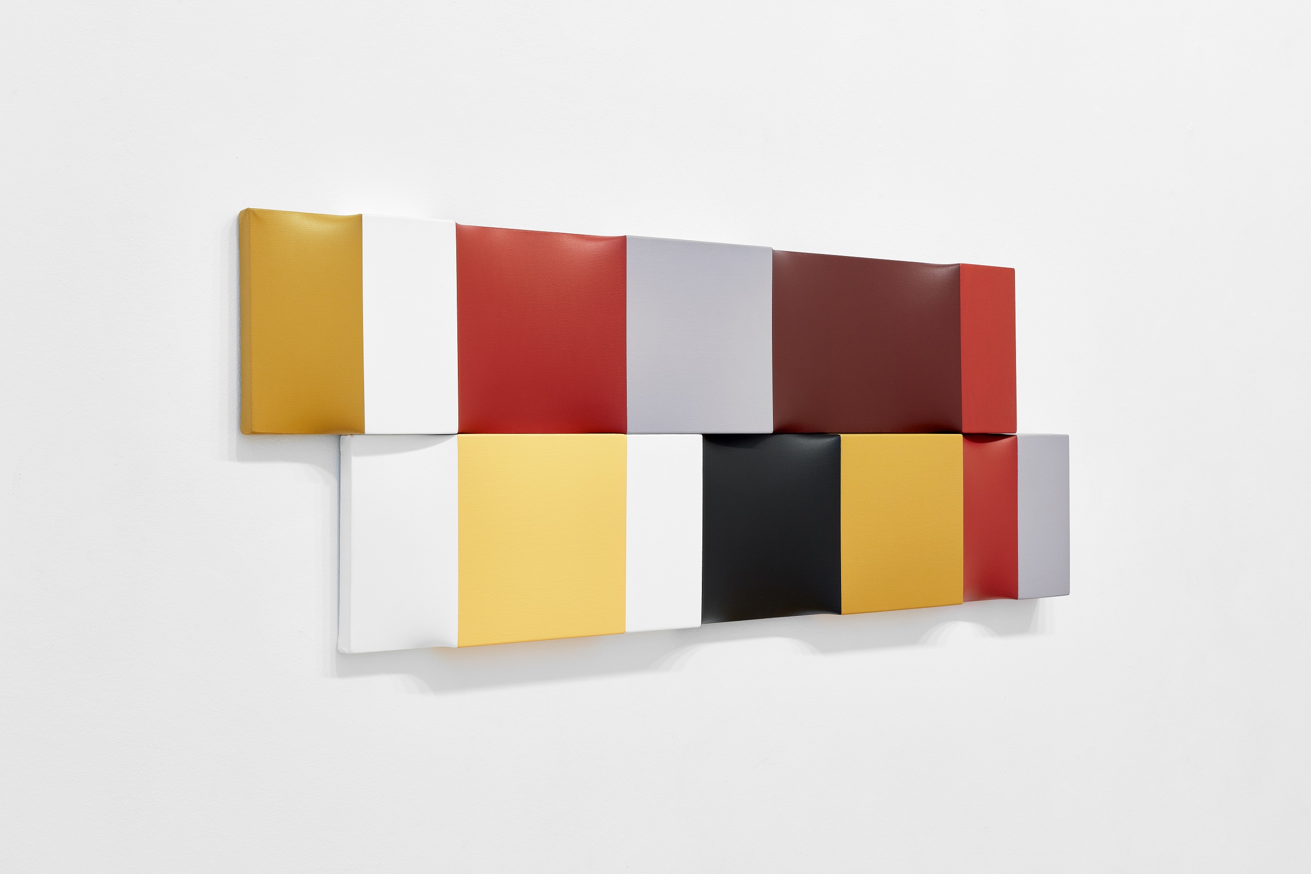 Legújabb sorozatában jól tetten érhető a számtani tárgyilagosságon alapuló, mégis rendkívül szenzuális képalkotási stratégia. A visszafogott négyzetes, egymás variációit adó monokróm akril felületek jelzés értékű térbeli intonációja és selymes fénye sorozat formájában bontja ki a rá jellemző dinamikus képtereket. (Magyar Fanni)
