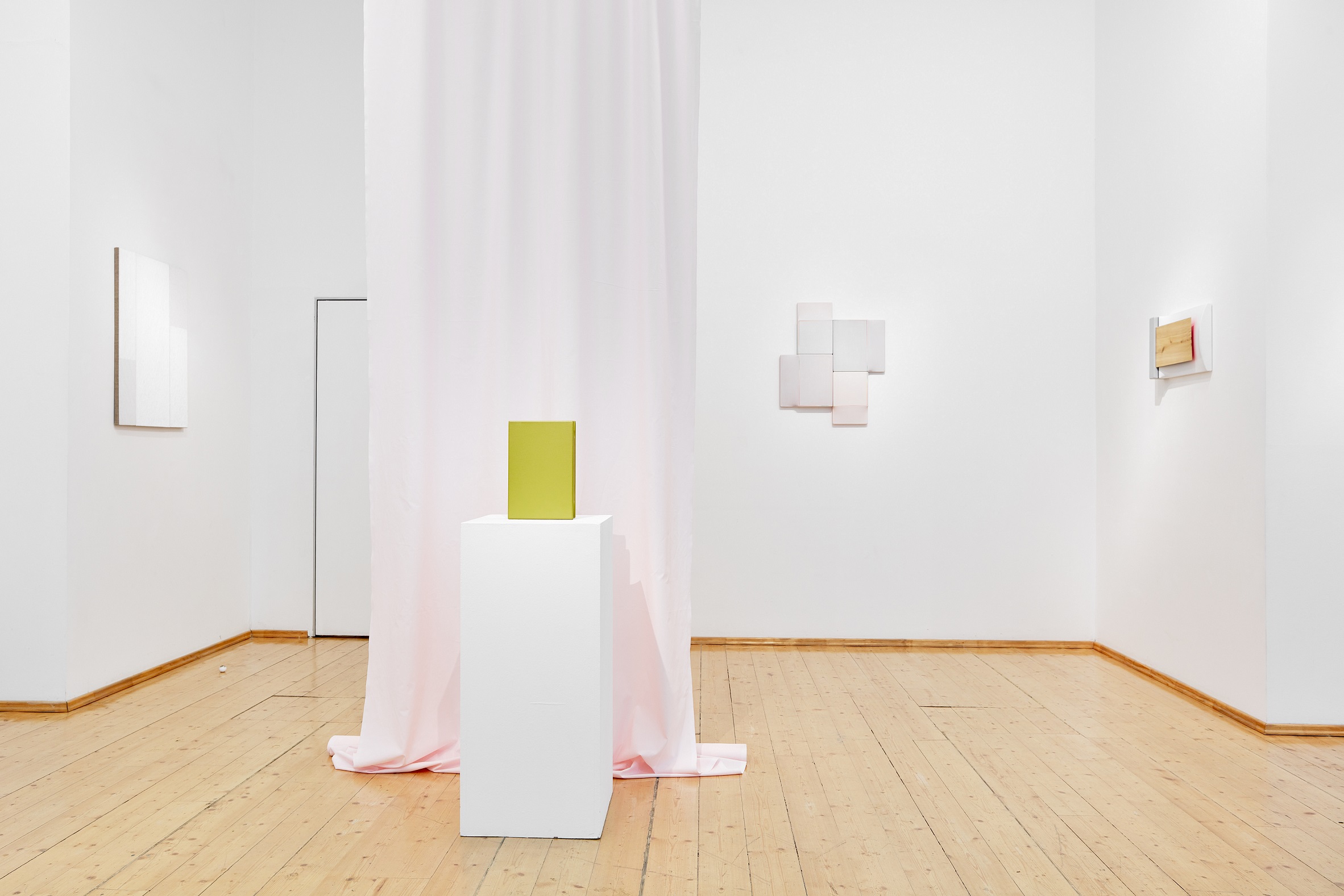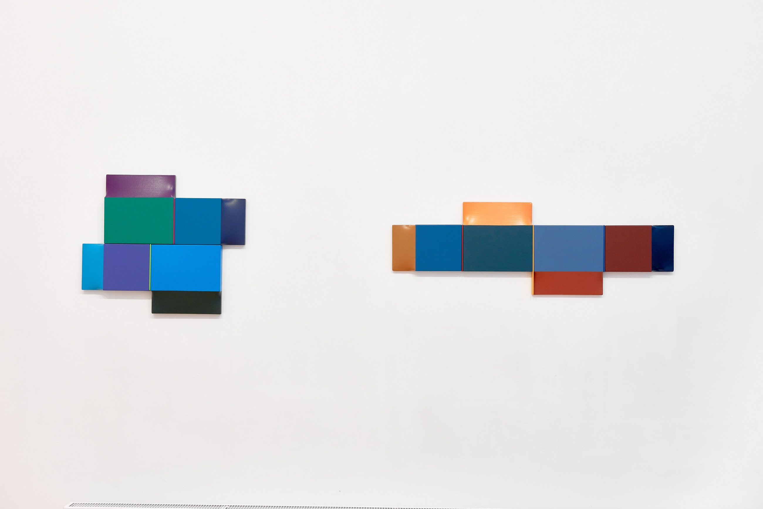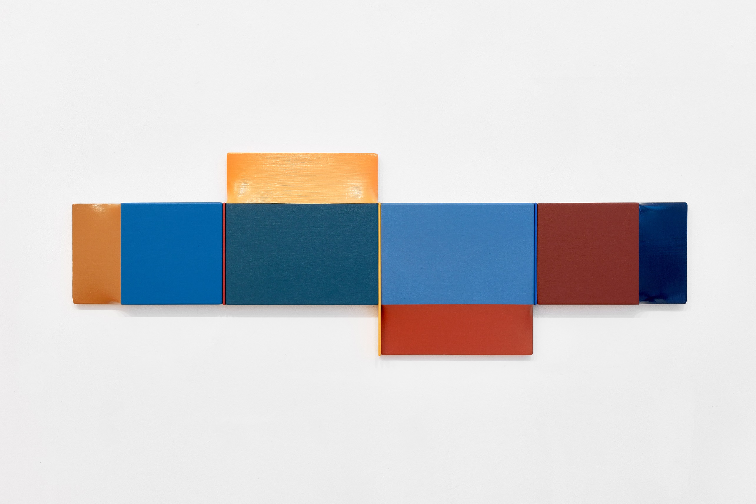 Legújabb sorozatában jól tetten érhető a számtani tárgyilagosságon alapuló, mégis rendkívül szenzuális képalkotási stratégia. A visszafogott négyzetes, egymás variációit adó monokróm akril felületek jelzés értékű térbeli intonációja és selymes fénye sorozat formájában bontja ki a rá jellemző dinamikus képtereket. (Magyar Fanni)