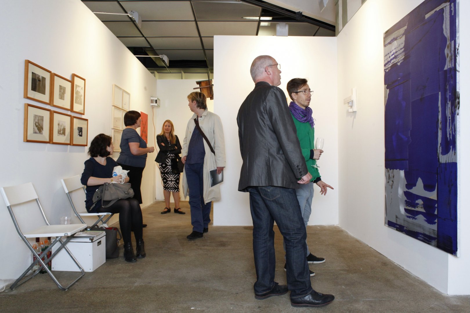 Arató Balázs a frissen alapított Horizont Galéria tulajdonosa beszélget Barabás Lajos műgyűjtővel, miközben a falakon Kiss Adrián és Kristóf Gábor festményei lógnak csöndesen.
