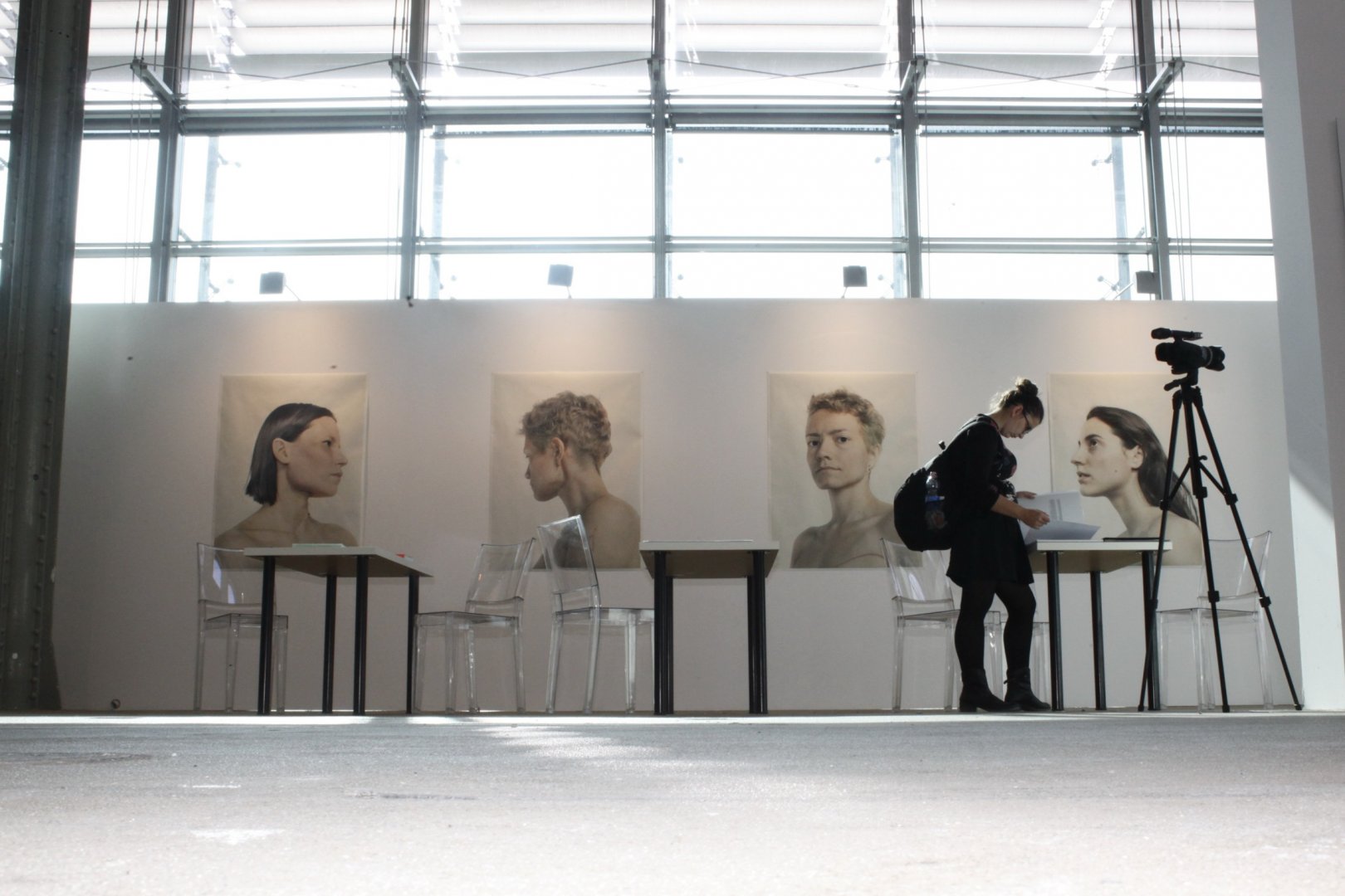 A MOME standján a fiatal Ács Alíz Veronika elegáns portréi sorakoznak – a fotós szekció részeként.