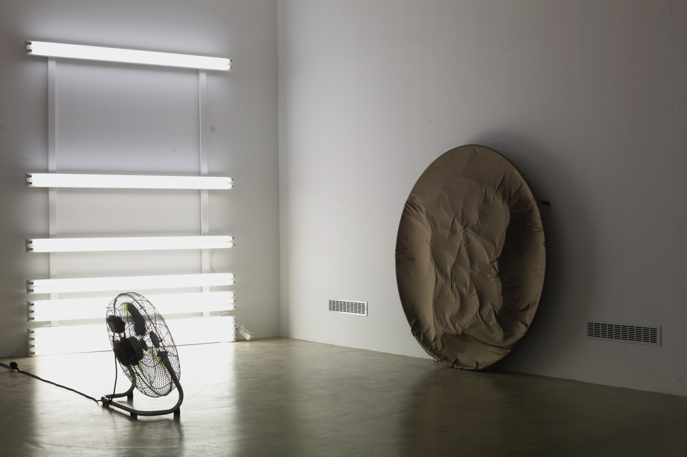 Problémamentesnek tűnik, de nem: nem az installáció látványa. Egyszerűen hívjuk kiállítási enteriőrnek. Ugyanis arról van szó: egy galériás környezetbe helyezett műtárgy (illetve műtárgy-együttes), szépen lefotózva, majd alá kanyarítva – hogy ne kelljen küszködni az egyes alkotások címeivel –, hogy installation view. Praktikus képalá illusztrációkhoz, és 99% százalékban magyarítható a kiállítási enteriőr formában.