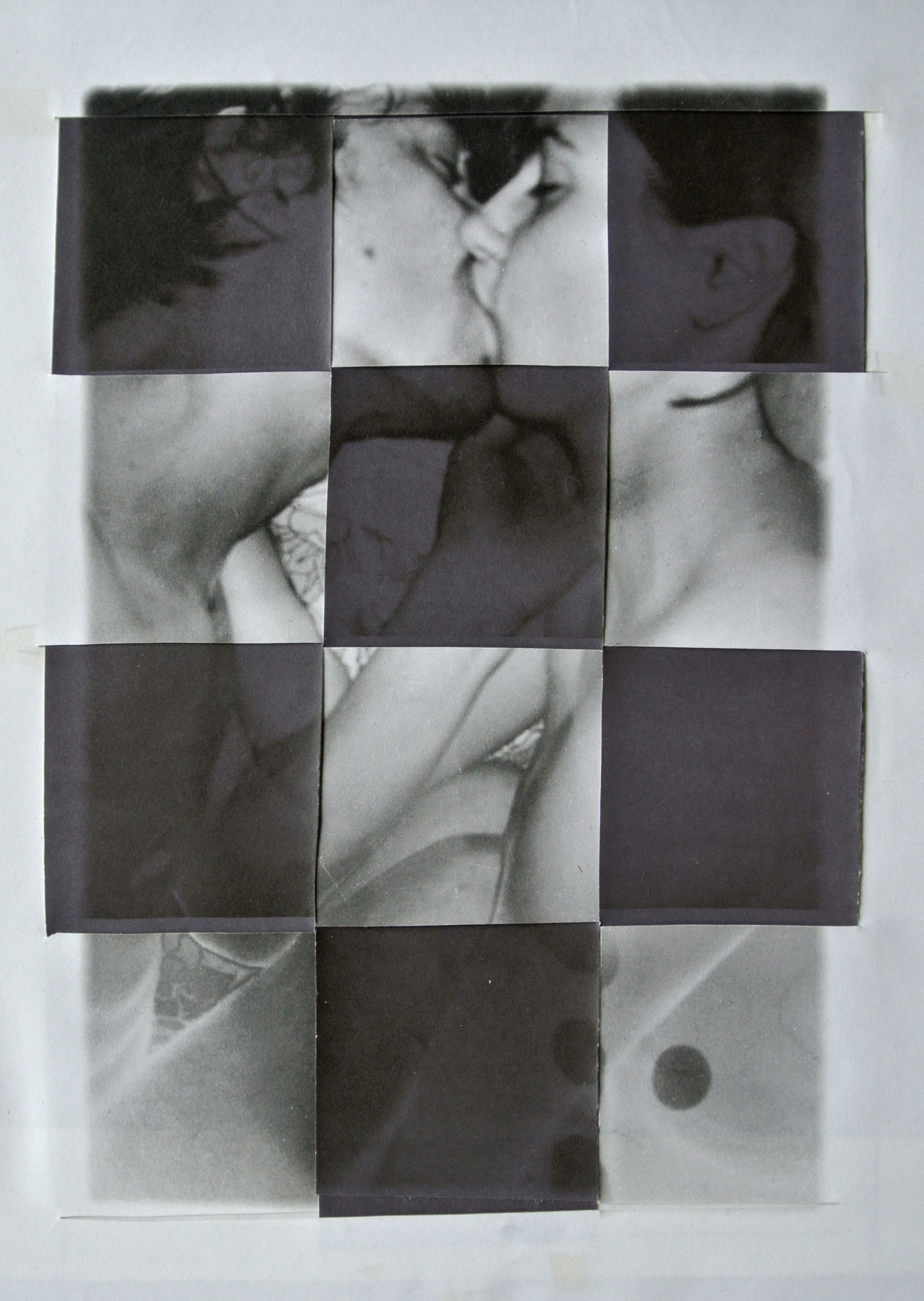 Agnieszka Grodzińska: Stills from home, unsentimental journey, 2014-16, kollázs talált fotón, 13×13 cm