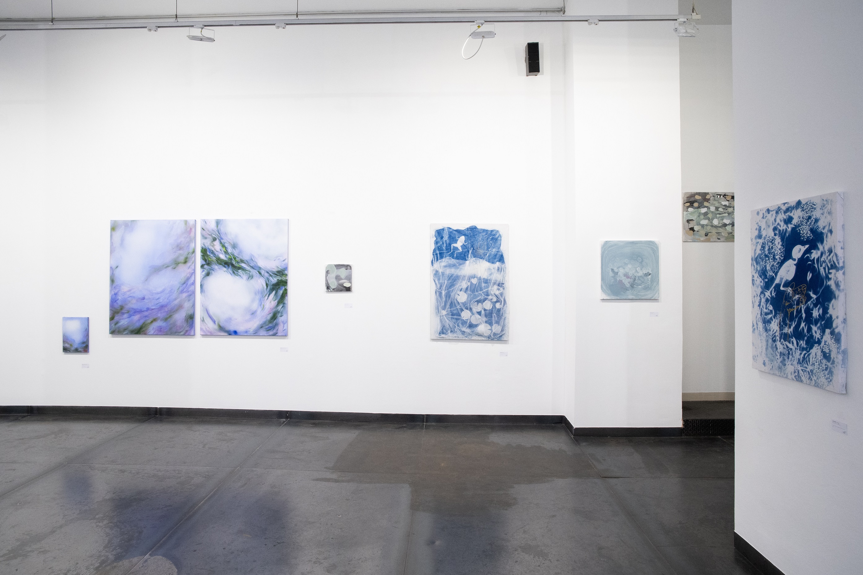 Palman Zsuzsi absztrakt festményei a pöttyök és foltok meditatív mintázataival ringatják el a nézőt egy állandó és kiszámítható világba. A ismétlődő minták azonban egyre inkább megtörnek, átalakulnak és összetorlódnak emlékeztetve minket arra, hogy bármekkora nyugalmat ad a rutin, az elmozdulás elkerülhetetlen.