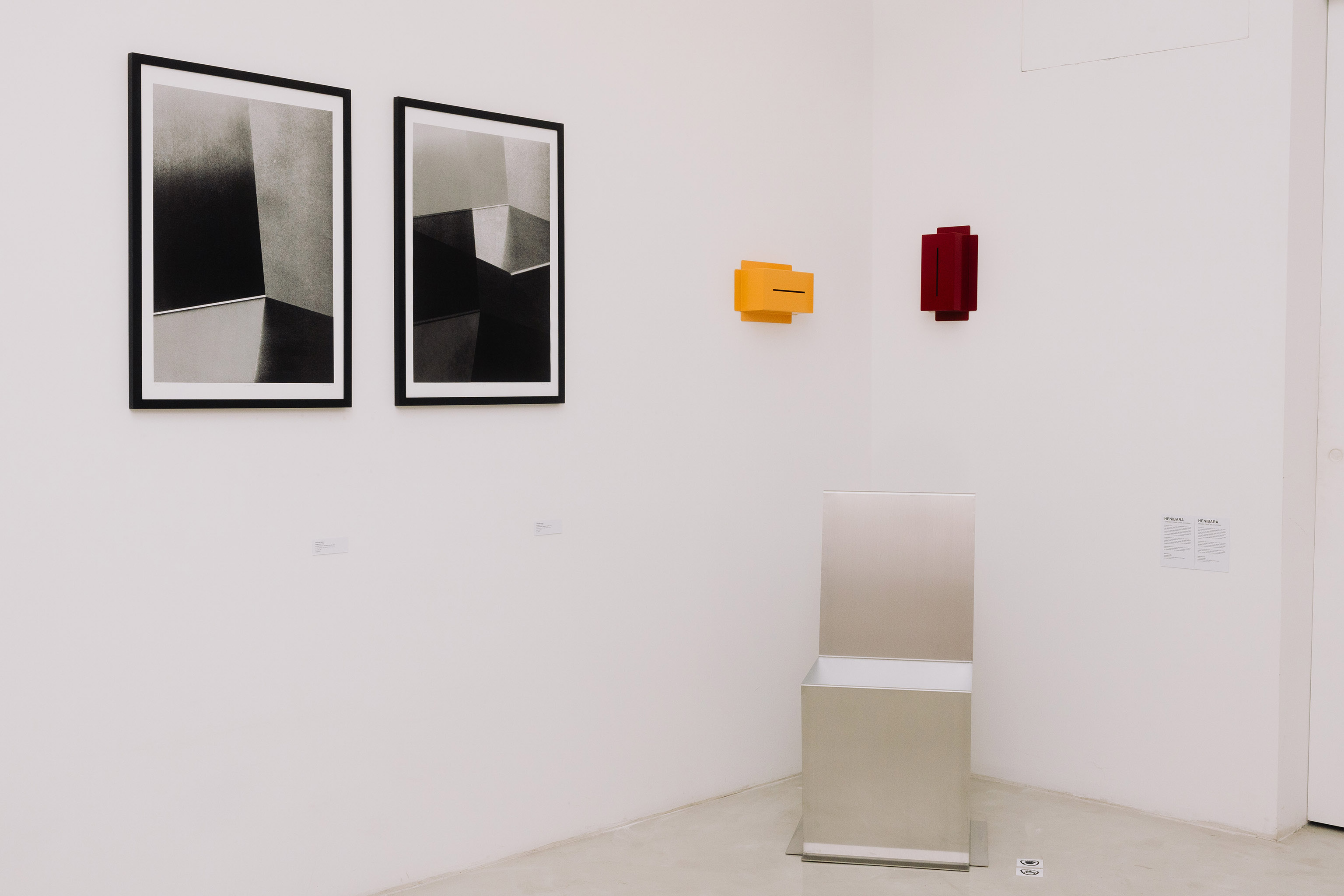 HENIBARA munkáiban a hajlított síkok könnyedsége és az anyag iránti érzékenység találkozik. Jellegzetes KARTON széke a kartondoboz egyszerű szerkezetét fordítja át acélba: megtartja annak légies jellegét, miközben új tartást ad neki. „Bár alapanyagaiban a fémet választja, tárgyaiban mégis végtelen érzékenység bújik meg a hideg saválló acél felületek mögött” – hangsúlyozza Erdész Barna a kiállítást megnyitó beszédében.